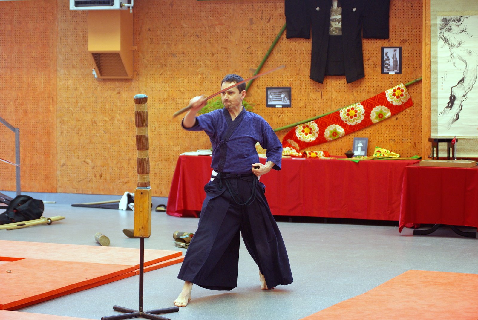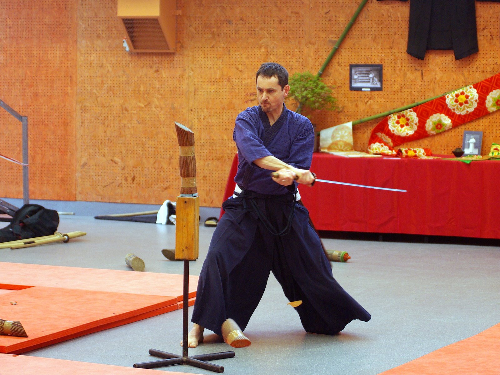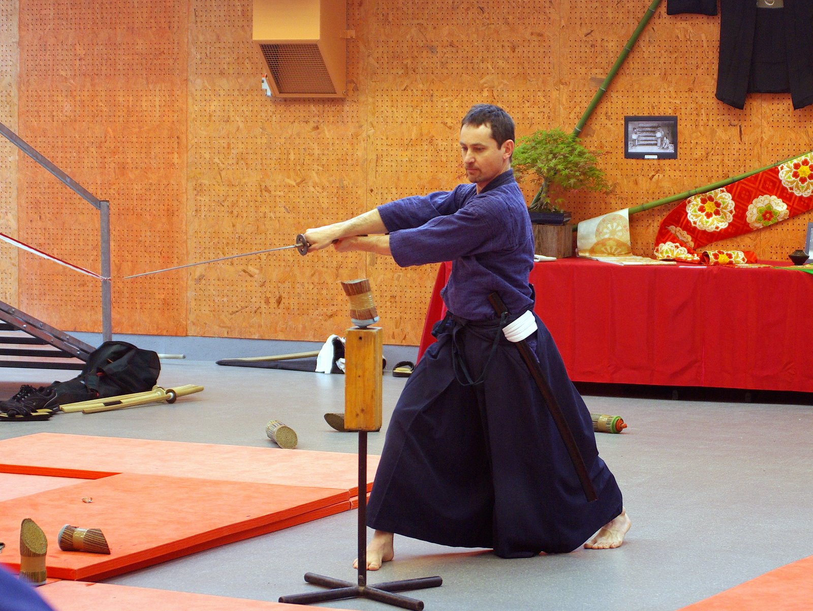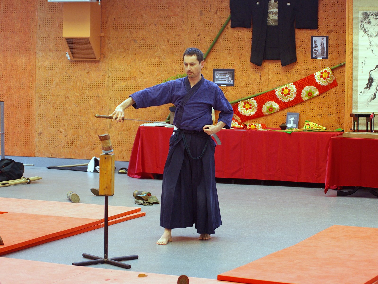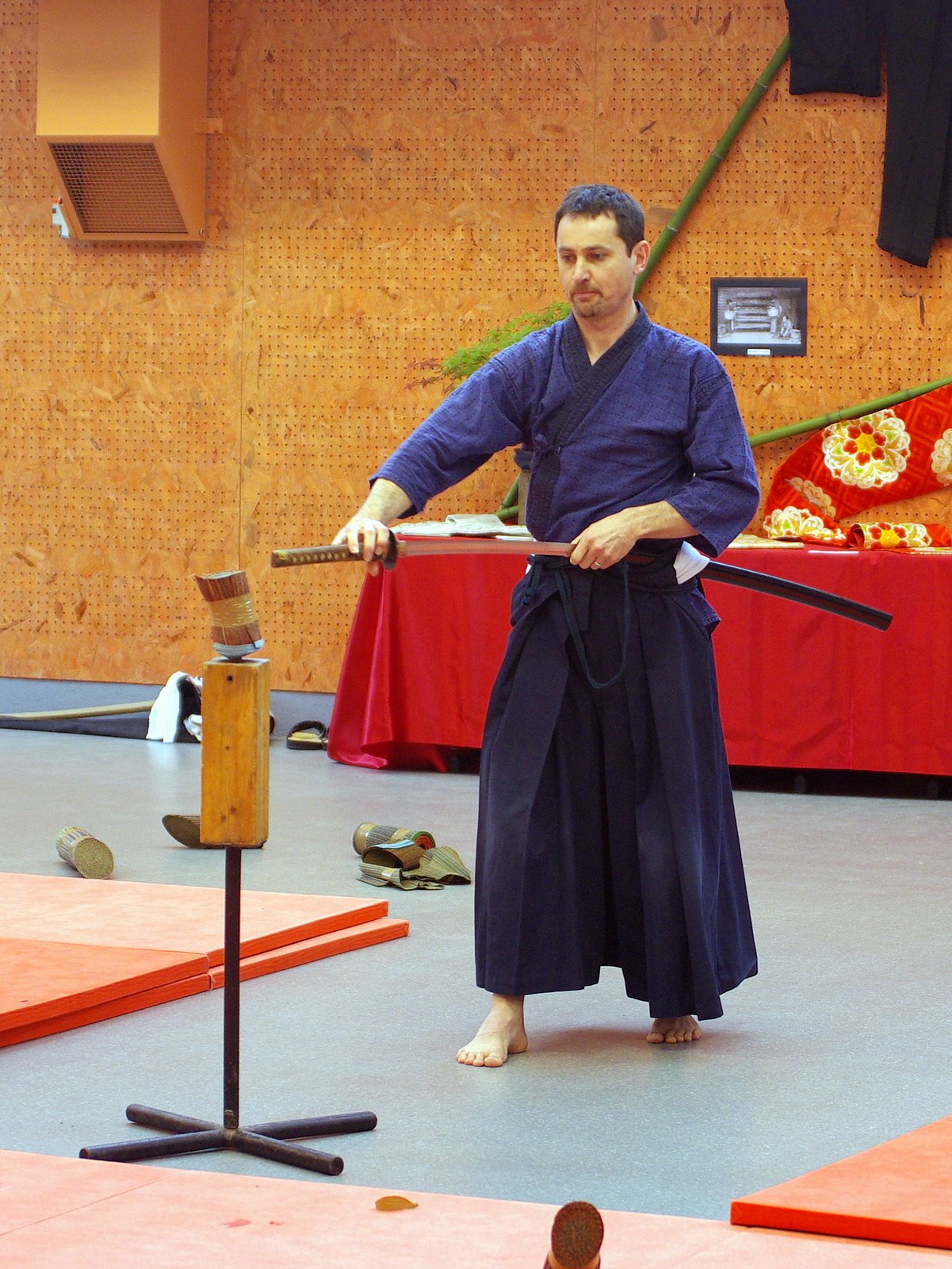 L'adversaire est représenté par un paillon, comme dans le iaïdo le pratiquant réalise des katas mais ceux-ci incluent la coupe réelle du paillon (voir photos ci-dessous).